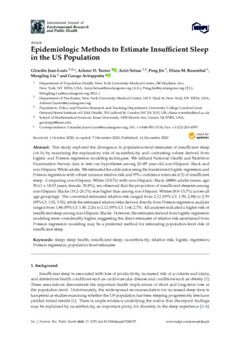 Keywords: | Poisson regression, insufficient sleep, logistic regression, population-level estimates, race/ethnicity, relative risk, sleep, sleep health |