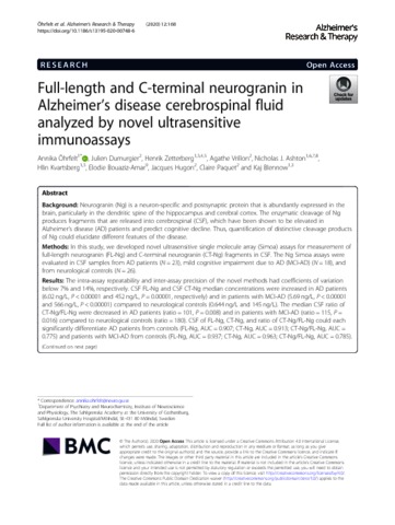 Full-length and C-terminal neurogranin in Alzheimer's disease cerebrospinal fluid analyzed by novel ultrasensitive immunoassays.