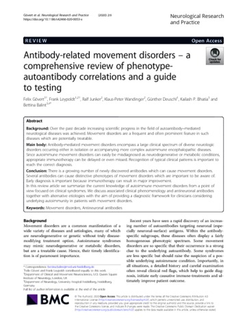 Title: | Antibody-related movement disorders - a comprehensive review of phenotype-autoantibody correlations and a guide to testing |