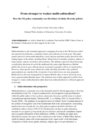 | Title: | From stronger to weaker multi-culturalism?: How the UK policy community sees the future of ethnic diversity policies |
