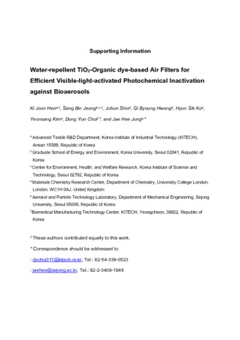 Title: | Water-Repellent TiO₂-Organic Dye-Based Air Filters for Efficient Visible-Light-Activated Photochemical Inactivation against Bioaerosols |