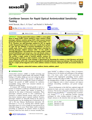 | Keywords: | diagnostics, antimicrobial resistance, cantilevers, bacteria, antibiotics, optical |