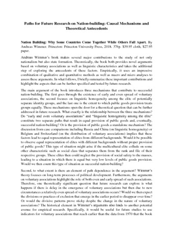 | Title: | Paths for Future Research on Nation-building: Causal Mechanisms and Theoretical Antecedents |
