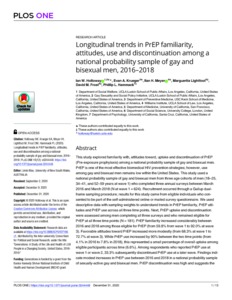 Title: | Longitudinal trends in PrEP familiarity, attitudes, use and discontinuation among a national probability sample of gay and bisexual men, 2016–2018 |