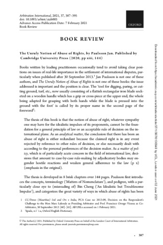 Title: | The Unruly Notion of Abuse of Rights, by Jan Paulsson. Published by Cambridge University Press (2020, pp xiii, 144) |