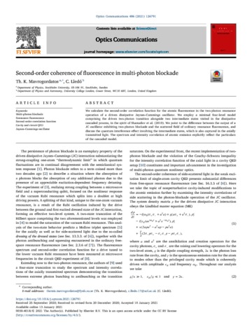 Keywords: | Multi-photon blockade, Resonance fluorescence, Second-order correlation function, Cavity and circuit QED, Jaynes–Cummings oscillator |