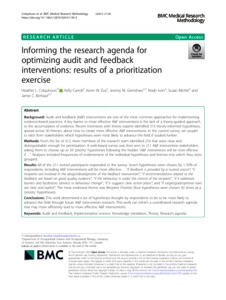 Informing the research agenda for optimizing audit and feedback interventions: results of a prioritization exercise.