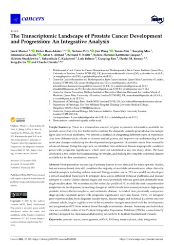 | Keywords: | prostate cancer; tumorigenesis; mRNA; RNAseq; transcriptomic; data integration |