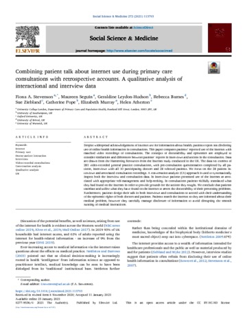 Title: | Combining patient talk about internet use during primary care consultations with retrospective accounts. A qualitative analysis of interactional and interview data |