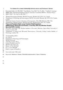 | Title: | No evidence for a causal relationship between cancers and Parkinson’s disease |