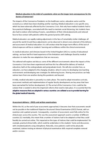 | Title: | Medical education in the midst of a pandemic: What are the longer term consequences for the doctors of tomorrow? |