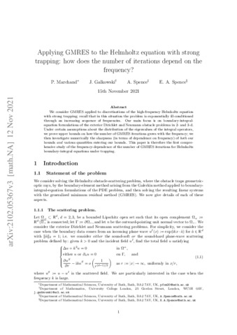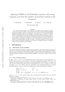 | Title: | Applying GMRES to the Helmholtz equation with strong trapping: how does the number of iterations depend on the frequency? |