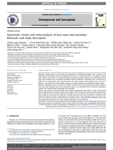 Systematic review and meta-analysis of lean mass and mortality: Rationale and study description.