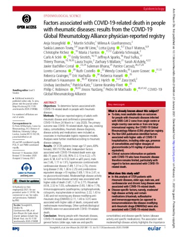 Factors associated with COVID-19-related death in people with rheumatic diseases: results from the COVID-19 Global Rheumatology Alliance physician-reported registry.