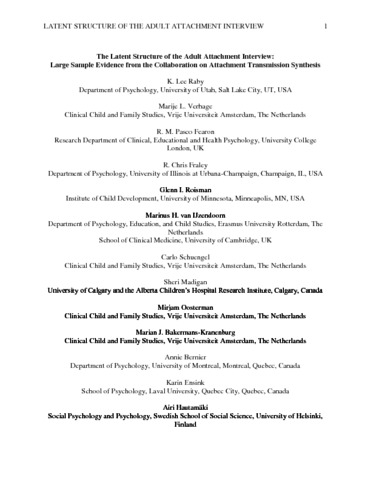 Title: | The latent structure of the adult attachment interview: Large sample evidence from the collaboration on attachment transmission synthesis |