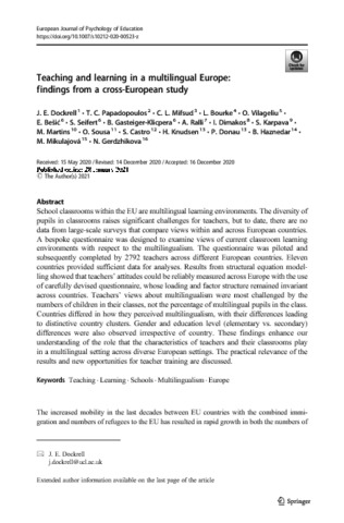| Title: | Teaching and learning in a multilingual Europe: findings from a cross-European study |