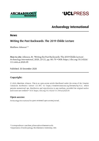 Title: | Writing the Past Backwards: The 2019 Childe Lecture |
