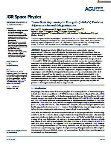 Title: | Dawn‐Dusk Asymmetry in Energetic (>20 keV) Particles Adjacent to Saturn's Magnetopause |