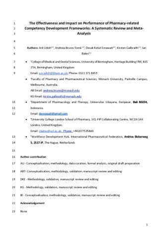 Title: | The effectiveness and impact on performance of pharmacy-related competency development frameworks: A systematic review and meta-analysis |