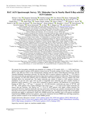 Title: | BAT AGN Spectroscopic Survey. XX. Molecular Gas in Nearby Hard-X-Ray-selected AGN Galaxies |