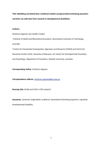 Modelling correlated data: Multilevel models and generalized estimating equations and their use with data from research in developmental disabilities.