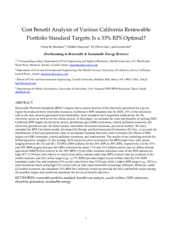 Title: | Cost-benefit analysis of various California renewable portfolio standard targets: Is a 33% RPS optimal? |