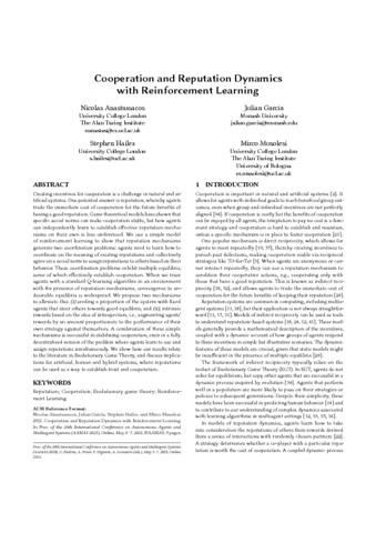| Title: | Cooperation and Reputation Dynamics with Reinforcement Learning |