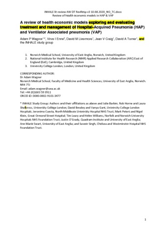 Title: | Review of health economic models exploring and evaluating treatment and management of hospital-acquired pneumonia and ventilator-associated pneumonia |