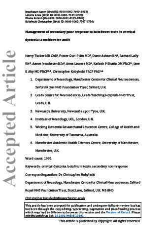 Management of secondary poor response to botulinum toxin in cervical dystonia: a multicentre audit.