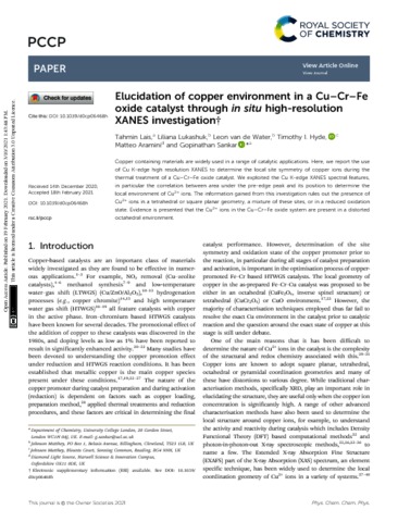 Title: | Elucidation of copper environment in a Cu-Cr-Fe oxide catalyst through in situ high-resolution XANES investigation |