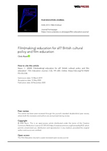 Since the late 1990s various consortia have published papers and reports seeking to establish a systemic public film education in Britain. Despite the time and effort taken by colleagues in organizations such as the British Film Institute (BFI), who have been involved in the production of these papers since at least Making Movies Matter in 1999, it is observable that each policy initiative has eventually fallen away. This article seeks to explore the discourse that these reports, taken together, present and how this might impact the development of a future public film pedagogy, as well as affect students who seek to study film and television production at later stages. This research was finalized shortly before the COVID-19 pandemic, at a time when the film and television industries in Britain were demonstrating huge fiscal successes; however, the fate of the talent that will shape the future of these industries is still very much hanging in the balance.