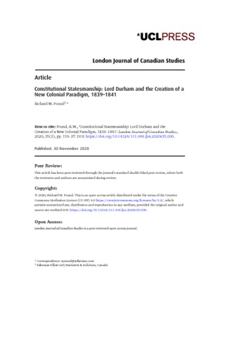 Title: | Constitutional Statesmanship: Lord Durham and the Creation of a New Colonial Paradigm, 1839–1841 |