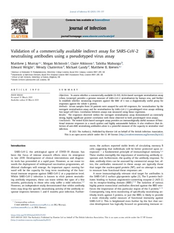 Reeves_Validation of a commercially available indirect assay for SARS-CoV-2 neutralising antibodies using a pseudotyped virus assay_VoR.pdf - Published Version Download (1MB) | Preview |