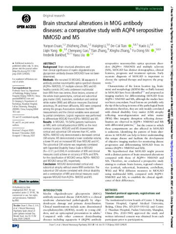Title: | Brain structural alterations in MOG antibody diseases: a comparative study with AQP4 seropositive NMOSD and MS |