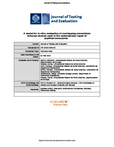 | Title: | A model for in vitro evaluation of overlapping connections between devices used in the endovascular repair of popliteal aneurysms |