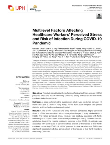 | Title: | Multilevel Factors Affecting Healthcare Workers' Perceived Stress and Risk of Infection During COVID-19 Pandemic |