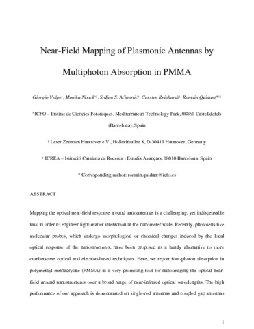 Title: | Near-Field Mapping of Plasmonic Antennas by Multiphoton Absorption in Poly(methyl methacrylate) |