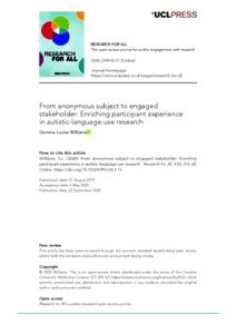 Title: | From anonymous subject to engaged stakeholder: Enriching participant experience in autistic-language-use research |