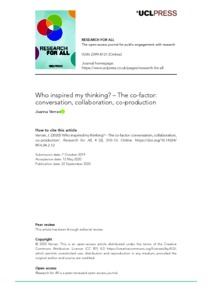Title: | Who inspired my thinking? – The co-factor: conversation, collaboration, co-production |