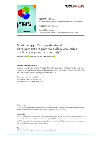 Title: | Mind the gap: Can a professional development programme build a university’s public engagement community? |