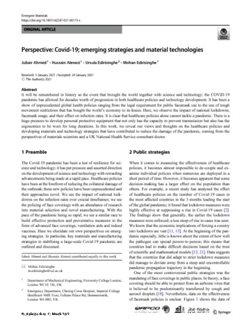 Edirisinghe_Perspective- Covid-19; emerging strategies and material technologies_AOP.pdf - Published Version Download (839kB) | Preview |