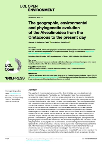 Title: | The geographic, environmental and phylogenetic evolution of the Alveolinoidea from the Cretaceous to the present day |