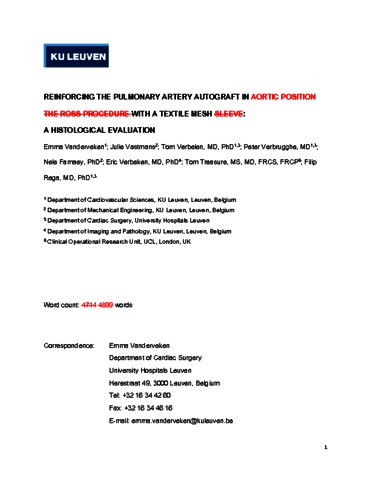 | Title: | Reinforcing the pulmonary artery autograft in the aortic position with a textile mesh: a histological evaluation |