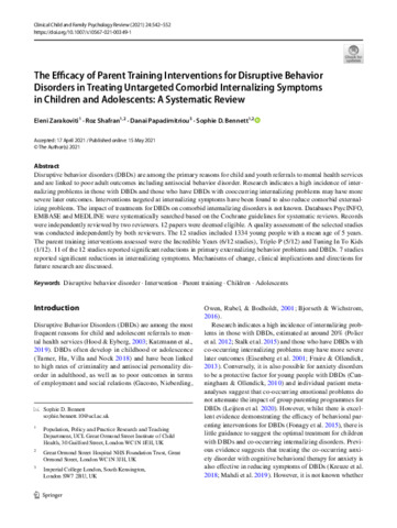 The Efficacy of Parent Training Interventions for Disruptive Behavior Disorders in Treating Untargeted Comorbid Internalizing Symptoms in Children and Adolescents: A Systematic Review.