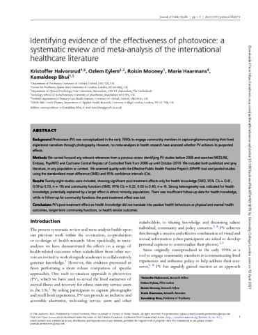 Title: | Identifying evidence of the effectiveness of photovoice: a systematic review and meta-analysis of the international healthcare literature |