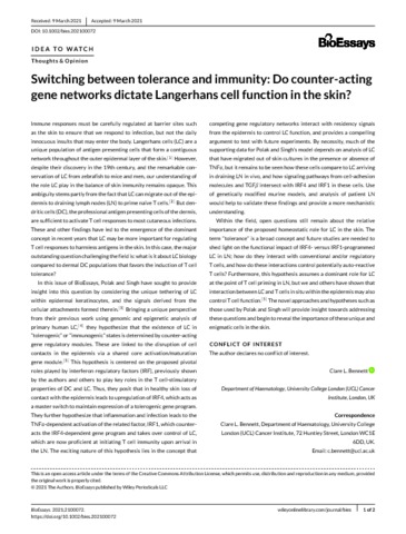 Title: | Switching between tolerance and immunity: Do counter-acting gene networks dictate Langerhans cell function in the skin? |