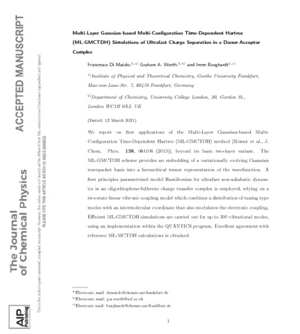 Title: | Multi-layer Gaussian-based multi-configuration time-dependent Hartree (ML-GMCTDH) simulations of ultrafast charge separation in a donor–acceptor complex |