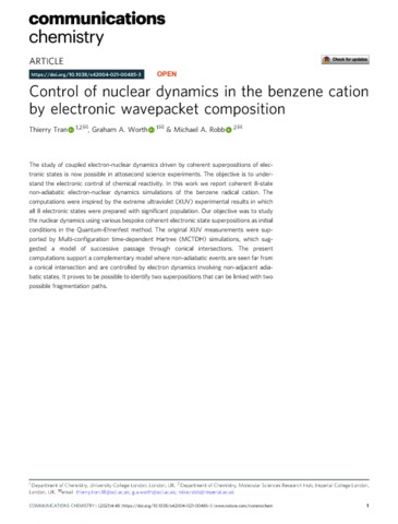 Title: | Control of nuclear dynamics in the benzene cation by electronic wavepacket composition |