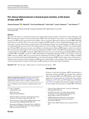 | Title: | Pre-clinical atherosclerosis is found at post-mortem, in the brains of men with HIV |