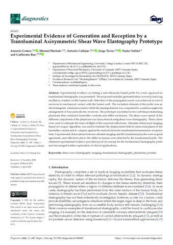 Title: | Experimental Evidence of Generation and Reception by a Transluminal Axisymmetric Shear Wave Elastography Prototype |
